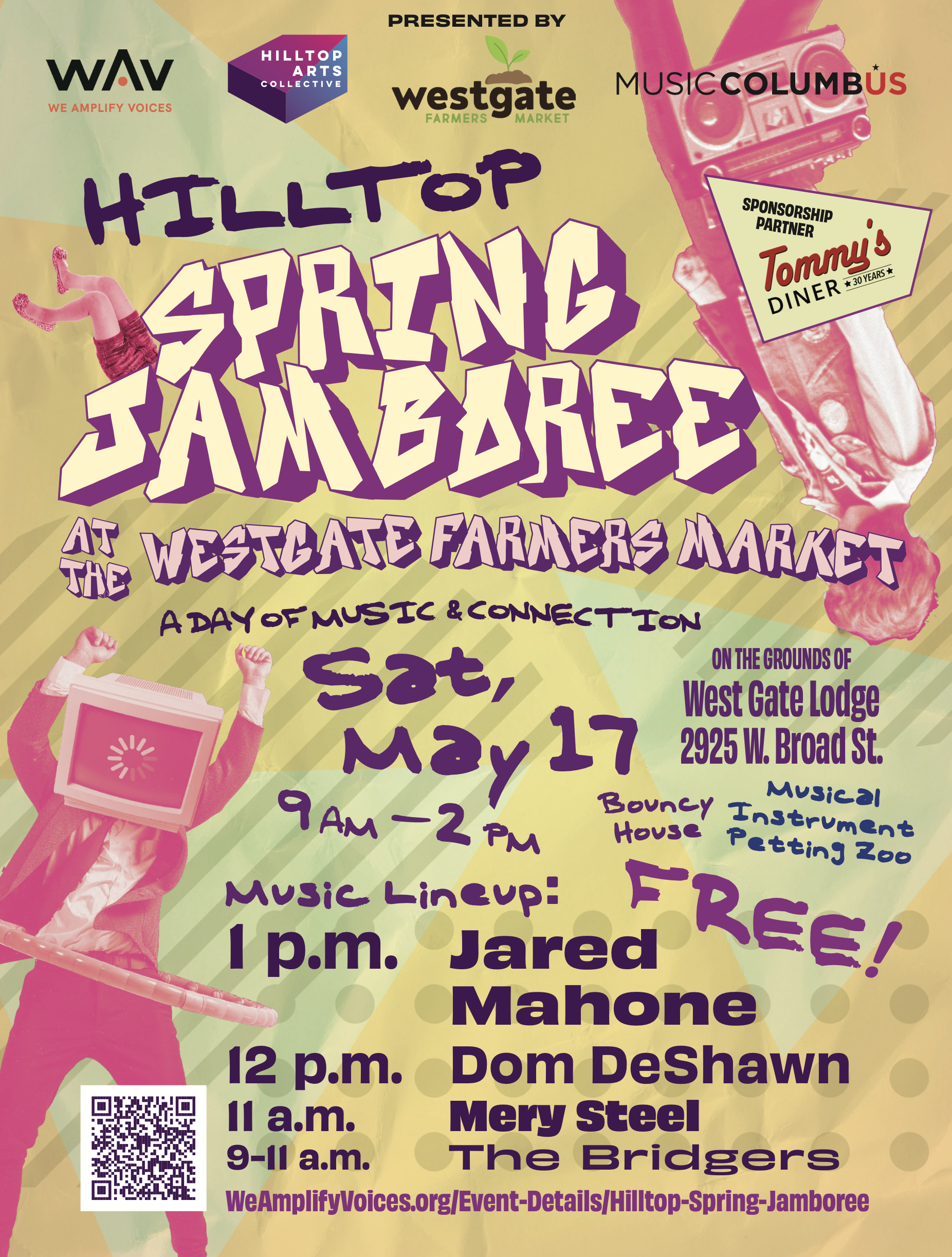 As a special treat, we will be presenting the Hilltop Spring Jamboree in partnership with We Amplify Voices, Hilltop Arts Collective, and MusicColumbus.