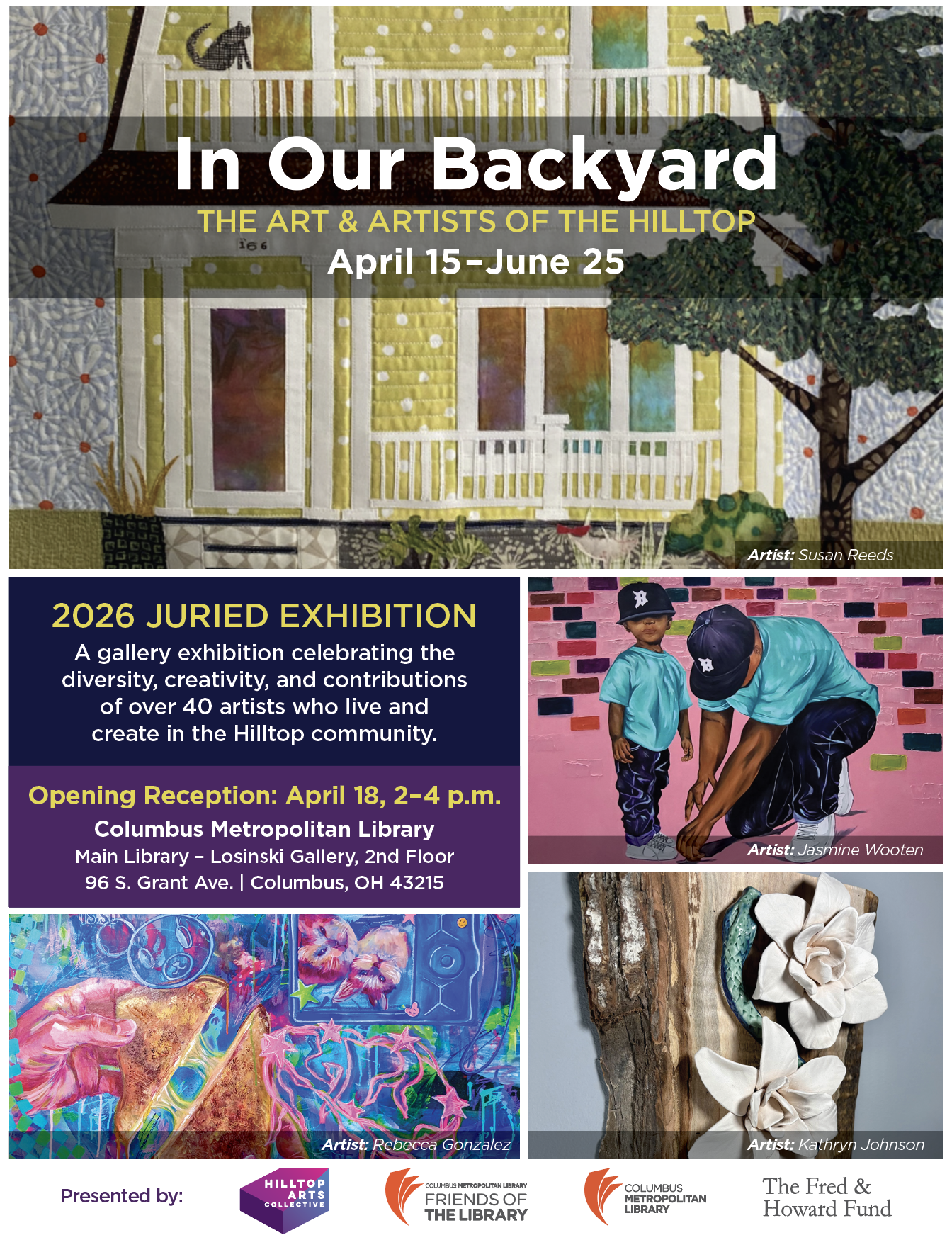 A gallery exhibition celebrating the diversity, creativity, and contributions of over 40 artists who live and create in the Hilltop community.